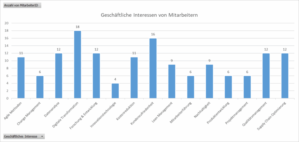 Geschäftliche Interessen der Mitarbeiter der fiktiven Firma