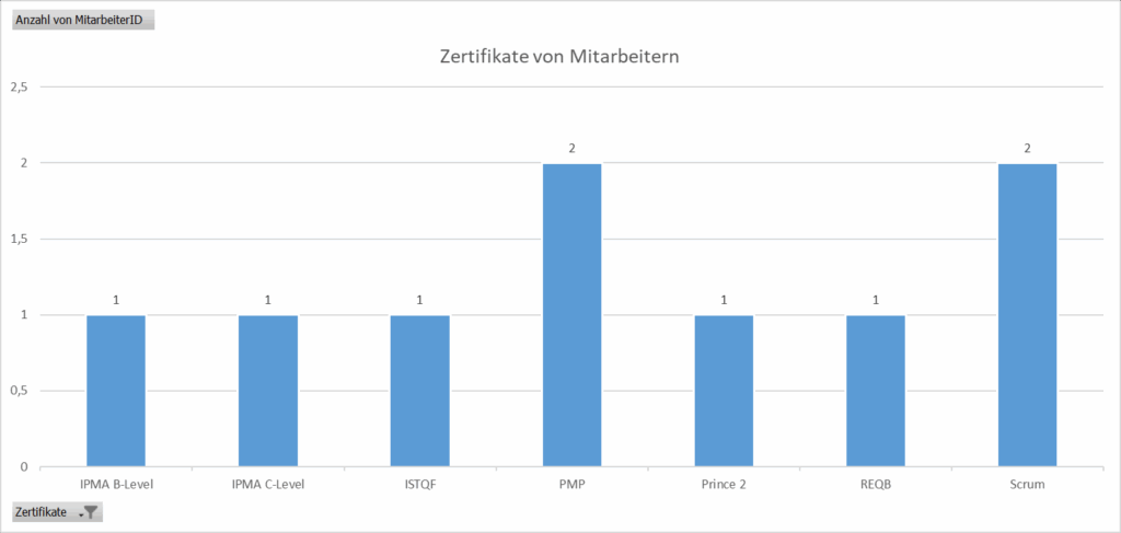 Zertifizierungen von Mitarbeitern der fiktiven Firma